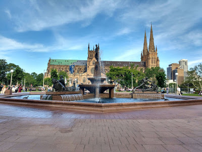 Back at Hyde Park, inexplicably attracted to the Yininmadyemi Memorial. I was pulling myself away from its magnetic aura to walk past a group of people indulging in some impromptu salsa. Buskers, street dancers and pedestrians celebrating life in the shadow of the ANZAC Memorial remembering the grief of sacrifice. The soul of the city, of Sydney, in teasing glimpses. In the distance, the gothic spires of the St. Mary\’s Cathedral created a most picturesque backdrop.